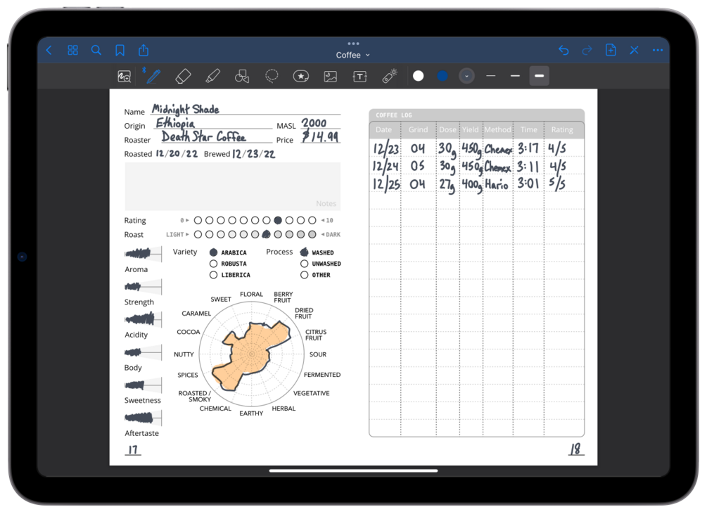 Recommended Use: Use PDF with Goodnotes to keep your espresso or coffee notes organized in one place on an iPad or mobile device!